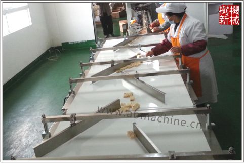 - 合適各類塊狀物品的主動擺列清算并包裝,全伺服理料節制體系,清算速率高達300個/分鐘。此理料流水線包羅3段理料皮帶,1段防并列保送帶,4段擺列清算皮帶,1臺包裝機主機(主動換膜功效)可矯捷毗連各類出產線;